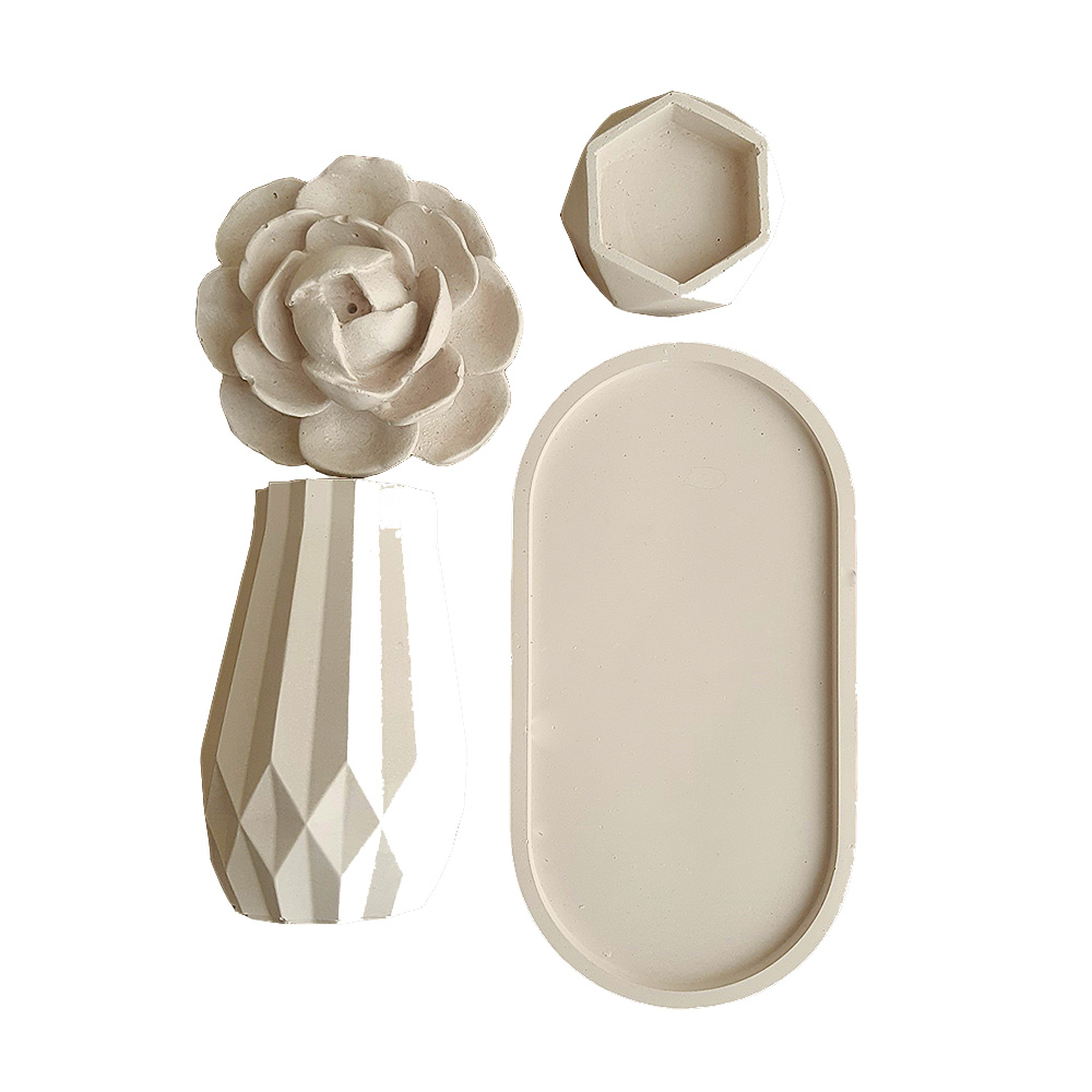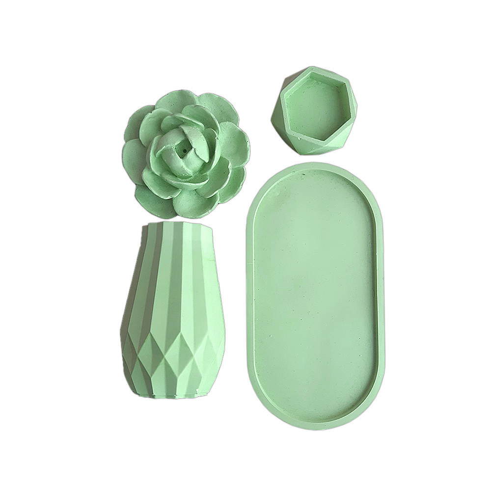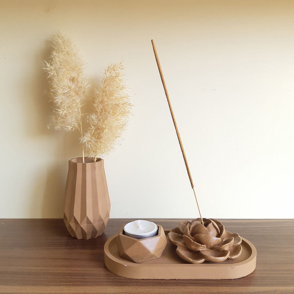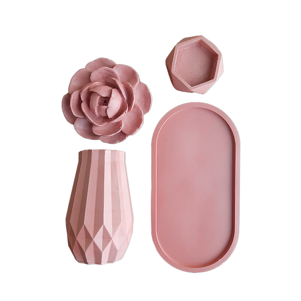 این ست ترکیبی از گلدان, جاعودی طرح گل، جاوارمری و زیره بیضی شکل می باشد. این محصول ساخته شده از بتن پلیمری بوده و برای میز عسلی مبلمان، میز تی وی، کانتر آشپزخانه، پاتختی سرویس خواب و همینطور استفاده در دفترکارتان مناسب است و به پیرامون شما زیبایی خاصی می بخشد. بدلیل طراحی ساده و دارا بودن رنگ های ملایم براحتی می تواند بر روی هر میز در هر سبک از طراحی دکوراسیون خود را جای دهد.